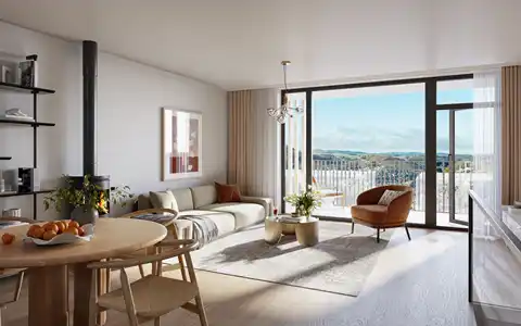 I andre etasje åpner boligen seg opp i en lys og romslig stue-/kjøkkenløsning med store vindusflater som slipper inn rikelig med dagslys. Her finner du også en praktisk bod, et gjestetoalett, og ikke minst en solrik balkong med nydelig utsikt – det perfekte stedet for rolige morgenstunder eller lange sommerkvelder.