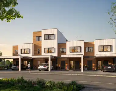 Boligene har biinngang/vaskerom i første etasje, en romslig entre og gjestetoalett. Lenger inn ligger stue/kjøkken-løsning med utgang til terrasse og hage. I andre etasje finner du 3 soverom, bad og en loftstue som kan gjøres om til et ekstra soverom om ønskelig.